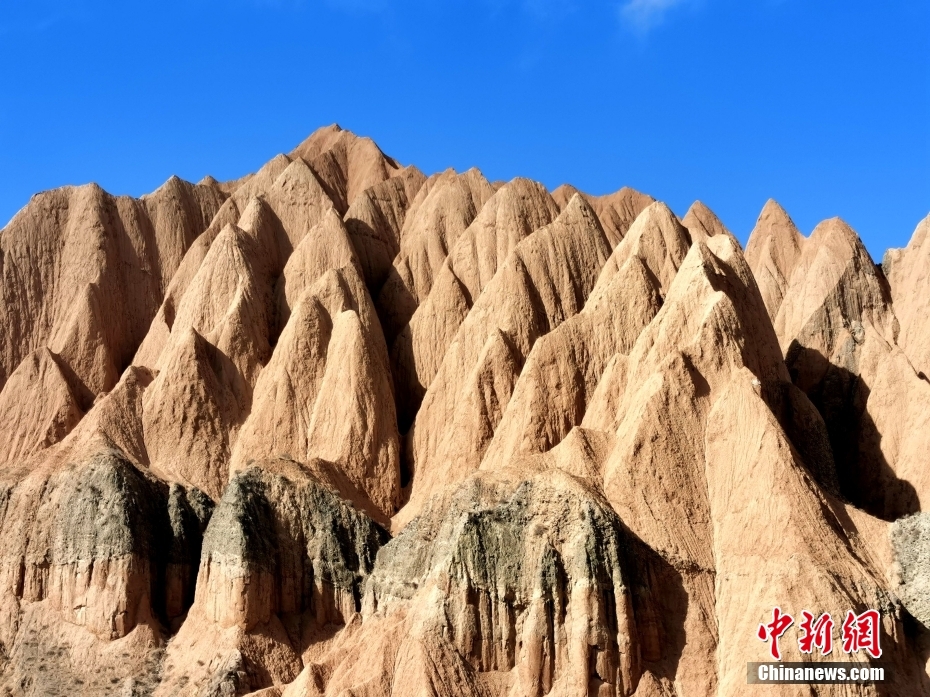 黃河岸畔丹霞地貌猶如千百個錐形桶