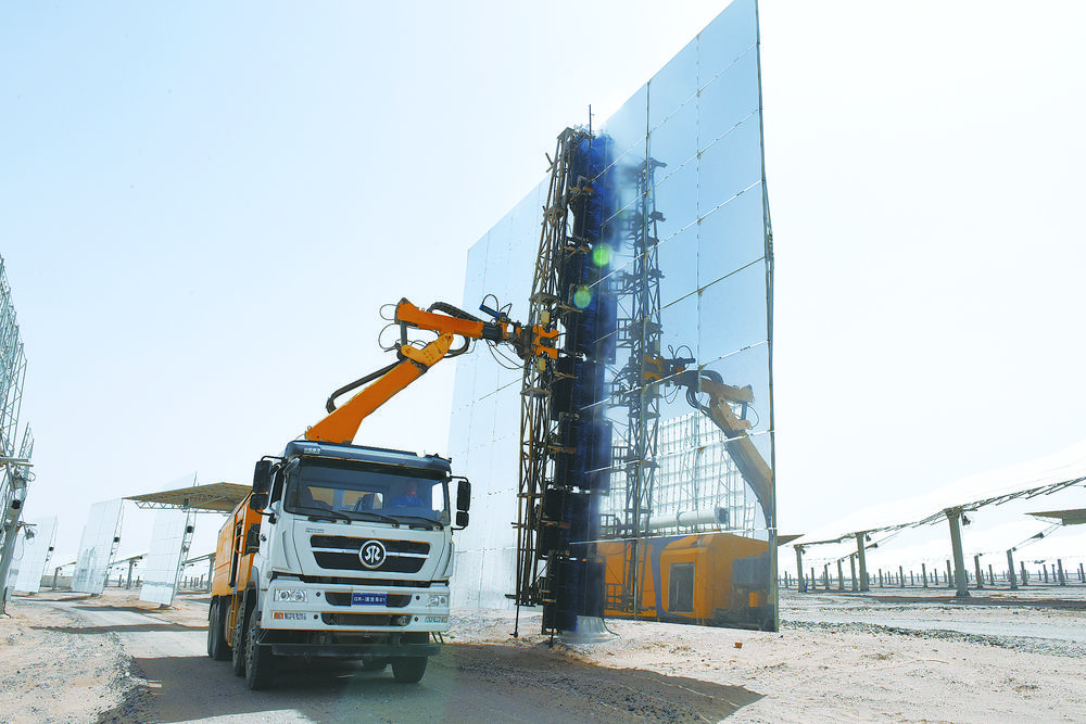 魯能新能源(集團)有限公司定日鏡清潔維護中。殷之皓 攝
