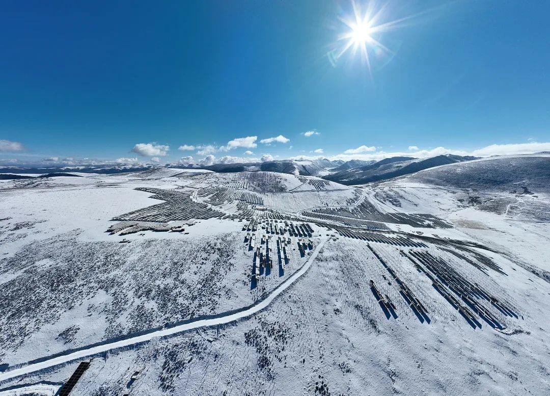同時(shí),項(xiàng)目工程量大,場(chǎng)址面積約16平方公里,由200多萬(wàn)塊光伏組件、5000多臺(tái)逆變器、300多臺(tái)箱式變電站組成。針對(duì)系列痛點(diǎn),為趕在今夏用電高峰前投運(yùn),建設(shè)者們創(chuàng)新工程技術(shù)手段,先后攻克10余項(xiàng)技術(shù)難題,創(chuàng)造了大型光伏項(xiàng)目在高寒高海拔地區(qū)冬季連續(xù)大規(guī)模施工的先例。