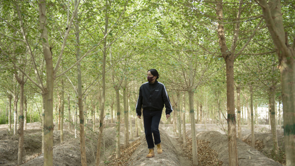 “白天氣溫二十五六攝氏度,晚上卻降到零下,還沒發(fā)芽的樹苗哪經(jīng)得起這種折騰,種下去不久就死了好多。最要命的是澆水,水質(zhì)多鹽堿,還不夠澆。如果起了風(fēng)沙,沙子能把樹皮磨禿。”過去的種樹經(jīng)歷在潘海軍的眼前重現(xiàn),“死一棵我們種兩棵,那個時候像憋著一股勁,一定要把樹種活!”
