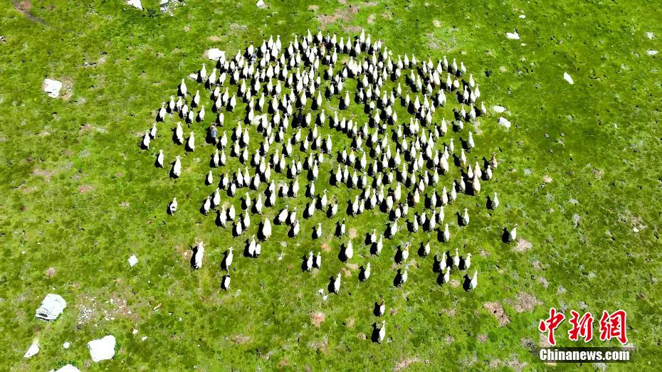 圖為草原上轉(zhuǎn)場的羊群。桑吉才讓 攝