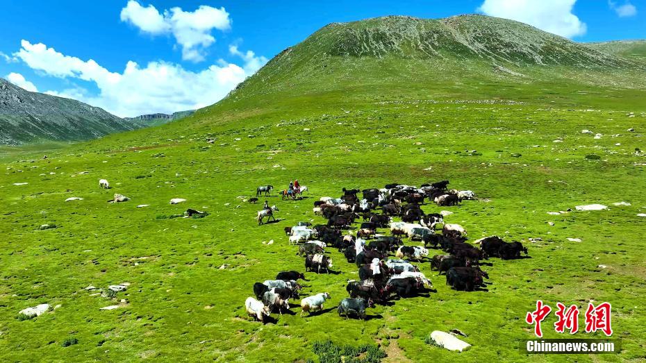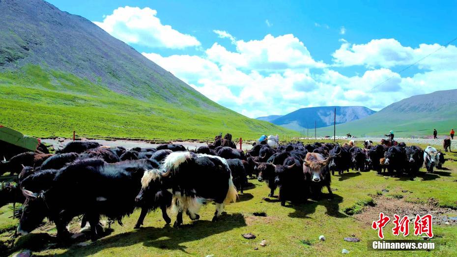 牧民趕著牛羊轉(zhuǎn)場。桑吉才讓 攝