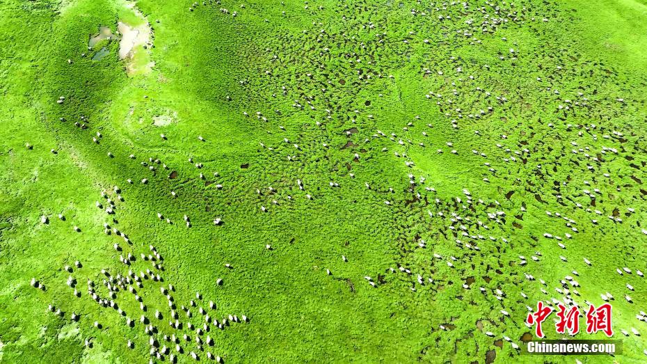 草原上的羊群似粒粒珍珠。桑吉才讓 攝