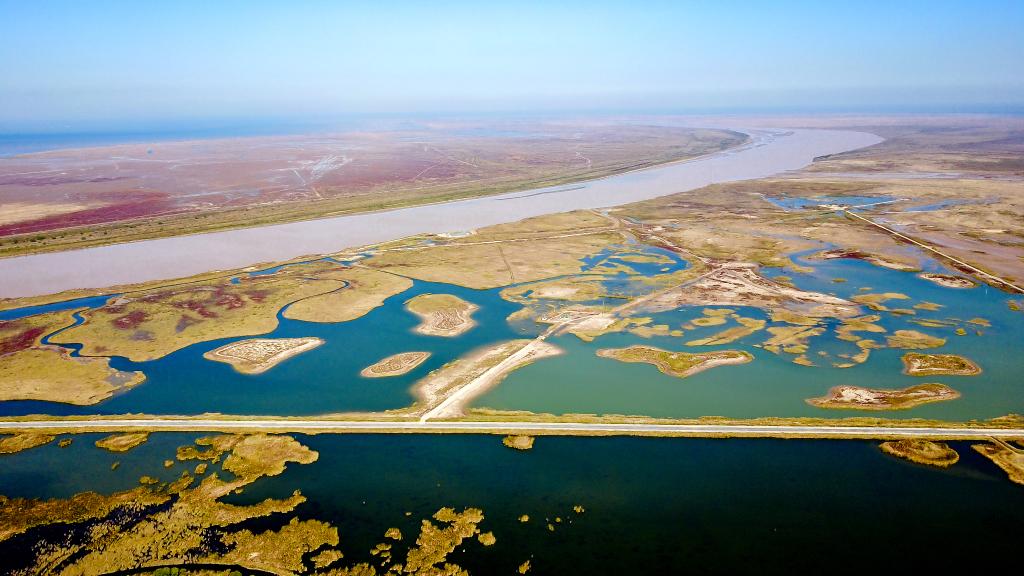 近年來,黃河三角洲國家級(jí)自然保護(hù)區(qū)建成“引、輸、蓄、排”科學(xué)生態(tài)補(bǔ)水體系,同時(shí)著力構(gòu)建“河—陸—灘—?!边B通體系,連通水系115公里,疏通潮溝76公里,恢復(fù)黃河與海洋的水文連通。原先的光板地、鹽堿灘,變成了水草豐茂、生物多樣性富集的大濕地。