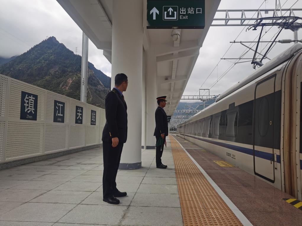試驗(yàn)列車(chē)在川青鐵路鎮(zhèn)江關(guān)站。(中國(guó)鐵路成都局集團(tuán)有限公司供圖)