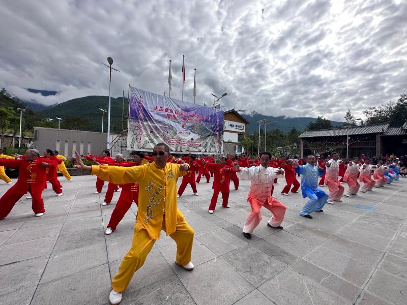 迪慶藏族自治州首屆美麗鄉(xiāng)村健身氣功交流比賽在香格里拉市金江鎮(zhèn)興隆村紅色研學基地開賽