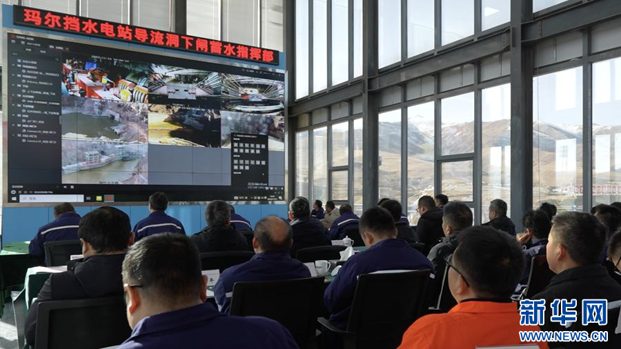 瑪爾擋水電站導流洞下閘蓄水現(xiàn)場。
