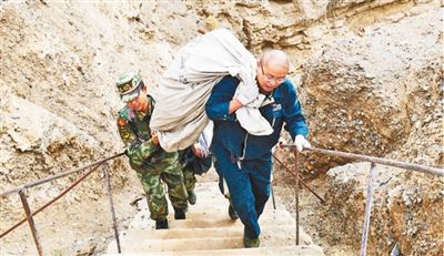 駐守青藏鐵路三岔河大橋武警某部駐地,修建在一處地勢(shì)十分陡峭的地方,需要爬上一條在陡峭山崖上開(kāi)鑿的150級(jí)“天梯”才能到達(dá)。
