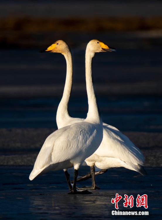 天鵝在湖冰上休憩。青海可魯克湖-托素湖省級自然保護(hù)區(qū) 供圖