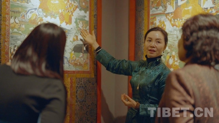 圖為央宗卓瑪正在給觀眾介紹唐卡的繪制內(nèi)容 攝影:姚浩然
