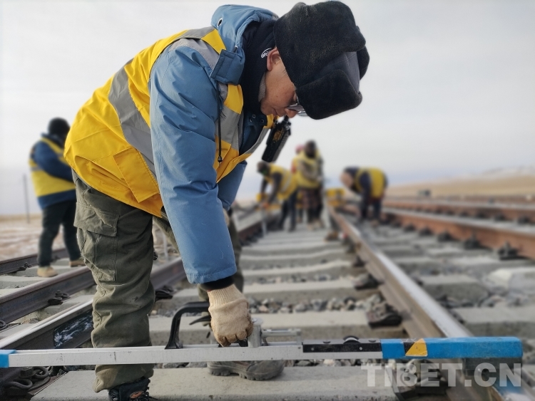 中國西藏網(wǎng)訊 2月9日,大年三十,中國鐵路青藏集團(tuán)有限公司格爾木工務(wù)段沱沱河線路車間通天河線路工區(qū)的10名職工驅(qū)車1小時(shí)來到青藏鐵路塘崗站,對(duì)鐵路線路設(shè)備病害進(jìn)行整治。