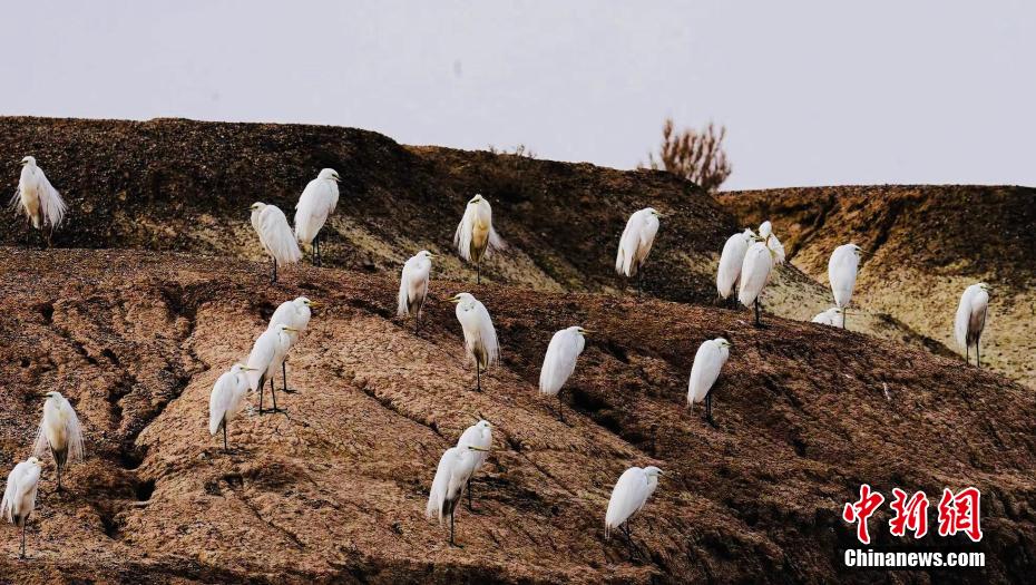 圖為白鷺在淺灘上曬太陽(yáng)。巴圖那生 攝