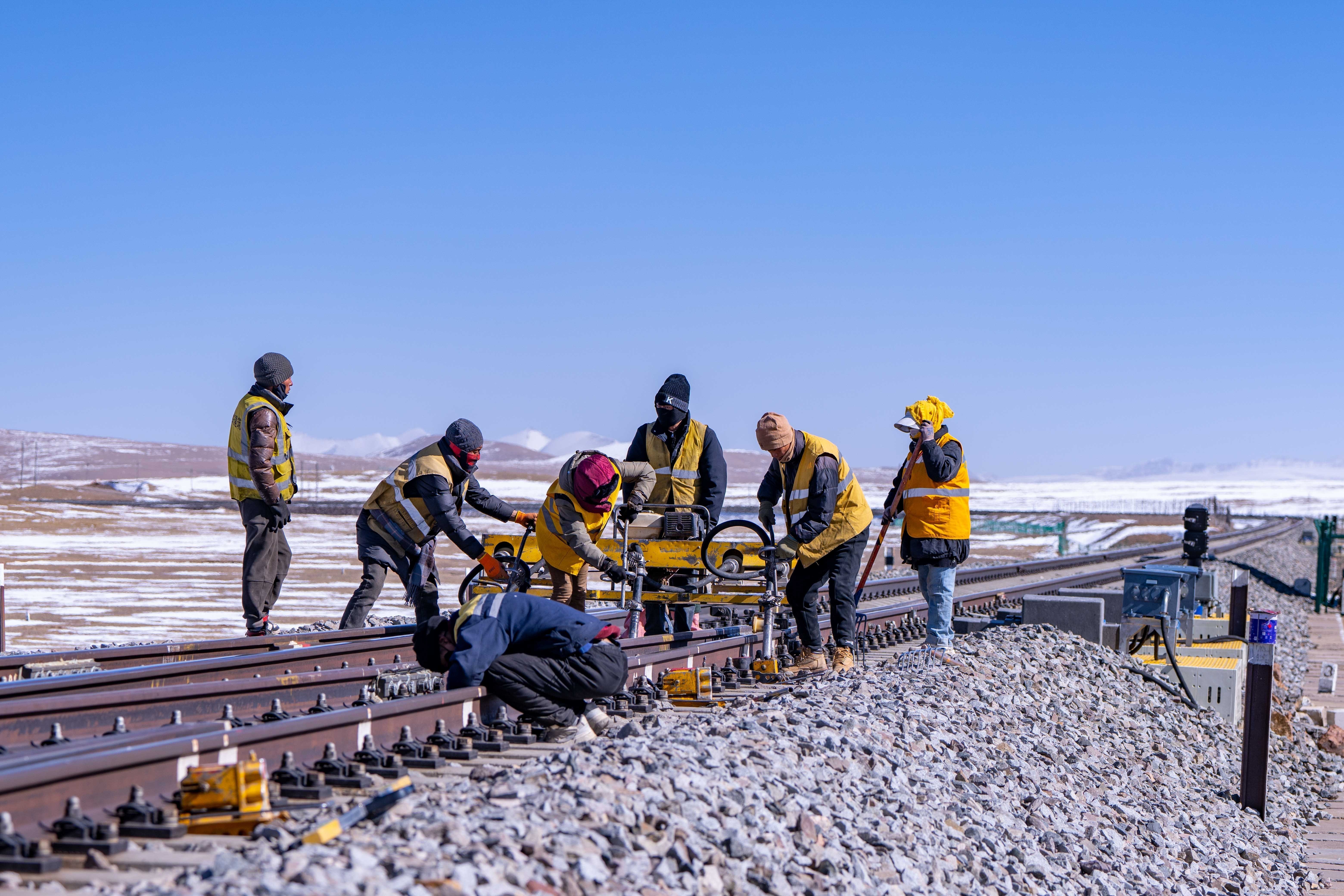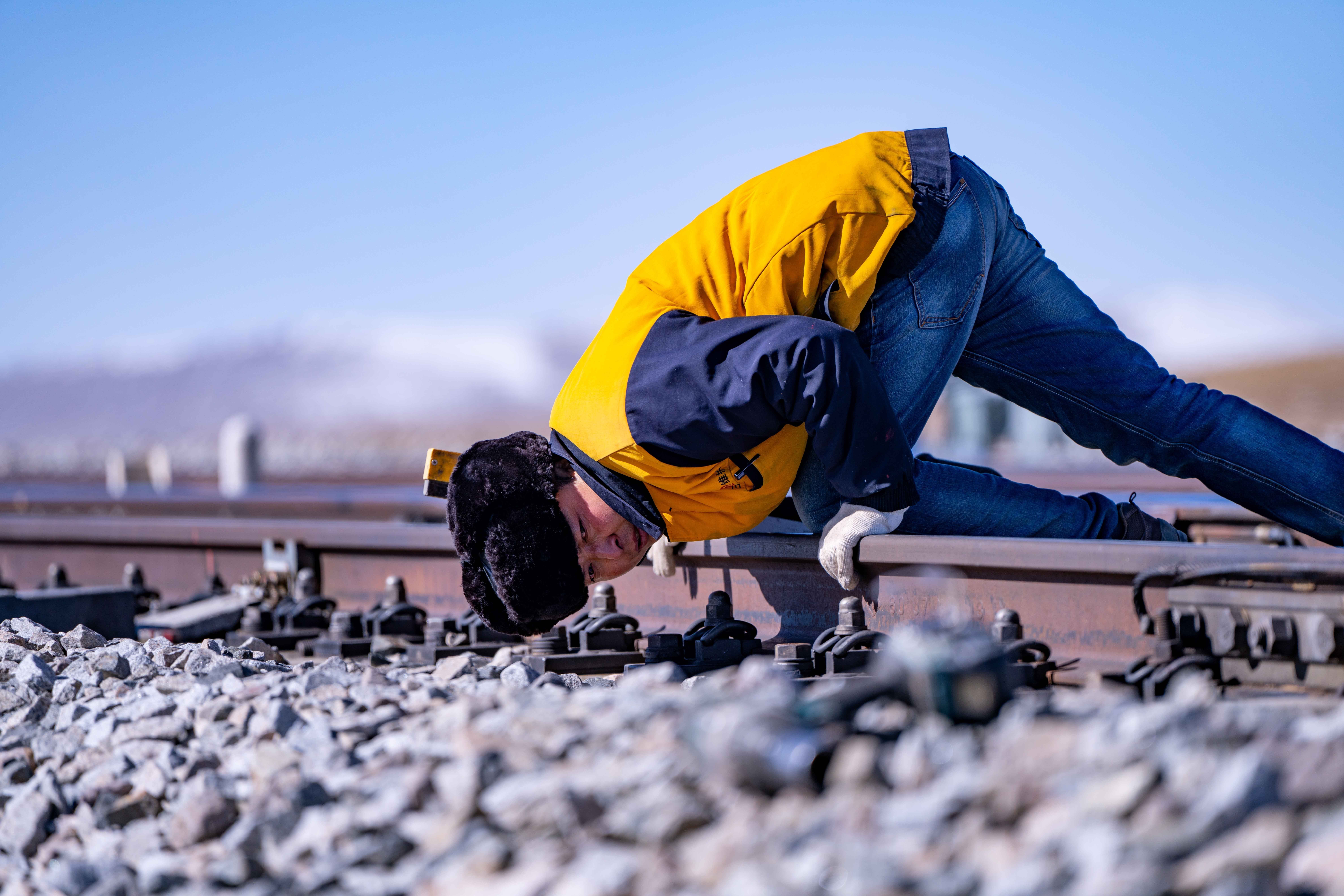 在唐古拉山,天窗無論早晚——從滿天星斗到晨光熹微,只要是需要施工的時候,馬祎俊都會帶著工人們奮戰(zhàn)在鐵軌之上。“為了讓鐵路更加平穩(wěn),我們多辛苦都值得?!彼f。