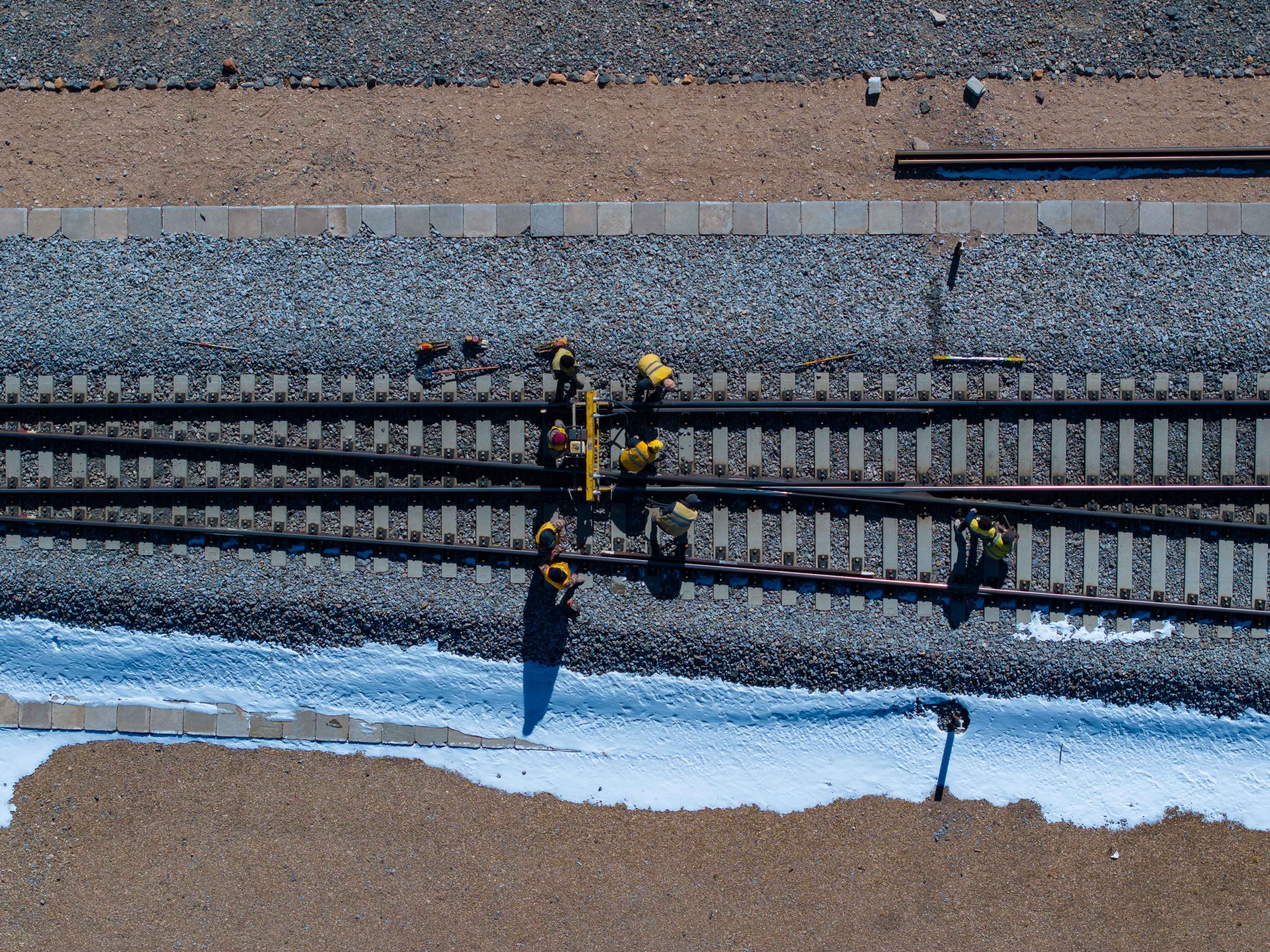 他帶著工人們迅速出動,抵達現(xiàn)場時已經是過了12點。這時天窗鄰近,他們迅速做好準備,第一時間沖到鐵軌上施工。黑夜里,幾個微小的燈光在茫茫荒野上晃動,隱約區(qū)分出鐵路的軌跡。