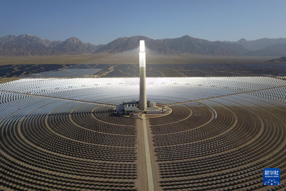 這是2022年6月8日在海西州德令哈市光伏(光熱)產(chǎn)業(yè)園拍攝的光熱電站(無人機(jī)照片)。新華社記者 范培珅 攝