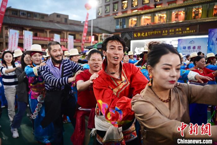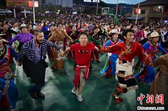 6月22日晚,來(lái)自世界各地參與“行走中國(guó)·報(bào)道中國(guó)”海外華文媒體甘肅行采訪團(tuán)走進(jìn)甘肅甘南藏族自治州卓尼縣,與當(dāng)?shù)孛癖姽蔡伹f舞,體驗(yàn)藏族文化的獨(dú)特魅力和民族風(fēng)情。