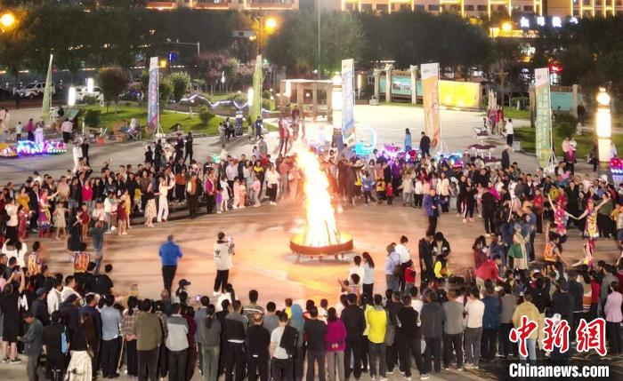 圖為冶力關(guān)洮州文化廣場(chǎng)上,每日晚間都有的篝火晚會(huì)。九美旦增 攝