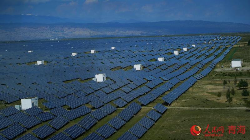 太陽(yáng)能光伏發(fā)電板匯聚成一片“藍(lán)色海洋”。人民網(wǎng)記者 甘海瓊 攝