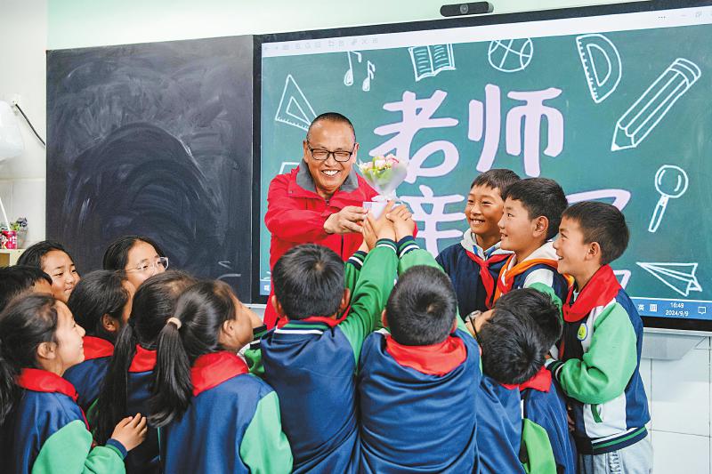9月10日,2023年到阿壩州紅原縣城關(guān)小學(xué)支教的綿陽(yáng)市鹽亭縣高渠小學(xué)張恩君老師收到了孩子們的教師節(jié)祝福。他克服各種困難,為高原孩子帶去知識(shí)。何海洋 攝