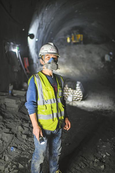 8月13日,值班長(zhǎng)陳亮在西寧至成都鐵路四川段紅原2號(hào)隧道內(nèi)。他每日往返洞內(nèi)數(shù)十次,工作超10小時(shí),主要負(fù)責(zé)觀察施工情況及人員調(diào)度。何海洋 攝