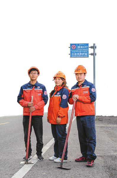 8月19日,甘孜州爐霍縣爐霍公路分局三岔河養(yǎng)護(hù)管理站,“90后”養(yǎng)護(hù)員袁明建(左)、尼馬翁姆(中)、蘭勛常年駐守,保障國(guó)道317線的暢通。何海洋 攝