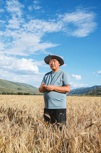 8月21日,從事農(nóng)業(yè)工作30年的甘孜州爐霍縣農(nóng)牧局種子管理站站長(zhǎng)屈斌在青稞地觀測(cè)作物生長(zhǎng)情況。他全程參與康青11號(hào)青稞育種,切實(shí)守護(hù)著川西北的高原糧倉(cāng)。何海洋 攝