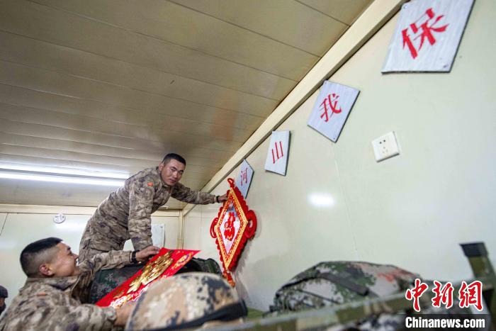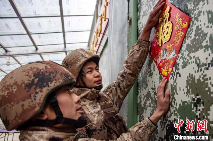 執(zhí)勤點上的官兵們,用“福”字、中國結將保溫方艙精心點綴裝飾,把祝福和期許默默留在心間。“一家不圓,萬家團圓。”馬雪建是官兵中唯一的零零后戰(zhàn)士,他表示:“一身戎裝接過送來的‘福’字,便是扛下了肩上的使命與責任,戰(zhàn)位上的新年就是邊關軍人的守望?!?/p>