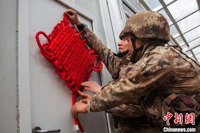 該旅官兵正在用中國結點綴裝飾保溫方艙?!⊥跏鰱| 攝