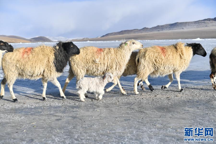 羊群在普莫雍錯湖心島上準備出發(fā)(3月6日攝)。新華社記者 普布扎西 攝