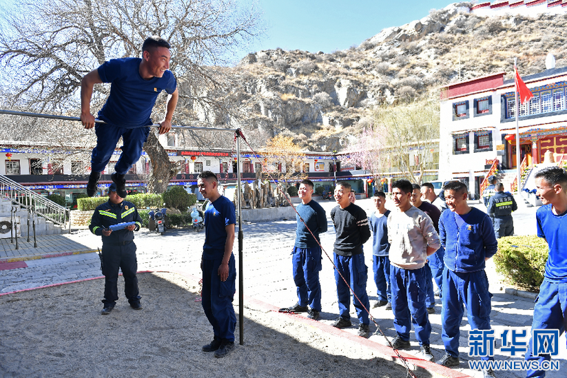 布達(dá)拉宮消防救援大隊(duì)隊(duì)員開(kāi)展例行體能測(cè)試(3月4日攝)。新華社記者 孫瑞博 攝