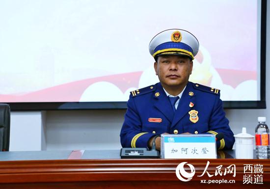 拉薩市消防救援支隊(duì)副支隊(duì)長加阿次登講話。人民網(wǎng) 李海霞攝