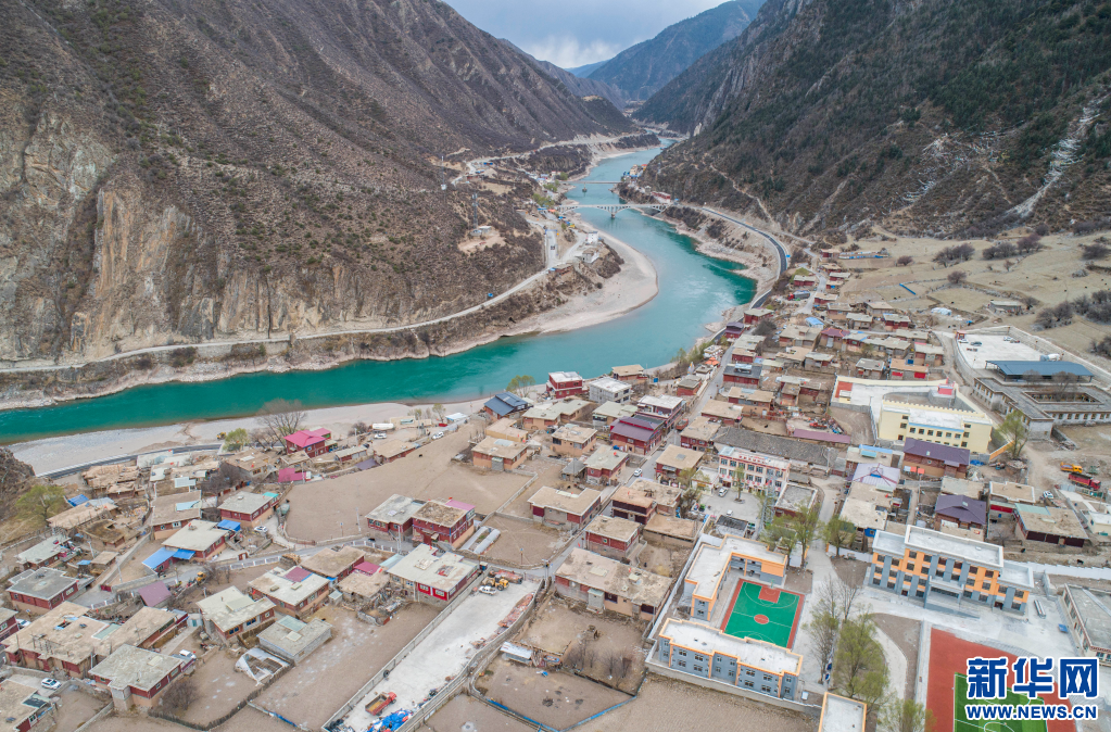 這是“西藏解放第一村”——昌都市江達縣崗?fù)墟?zhèn)崗?fù)写澹?月23日攝,無人機照片)。新華社記者孫非 攝