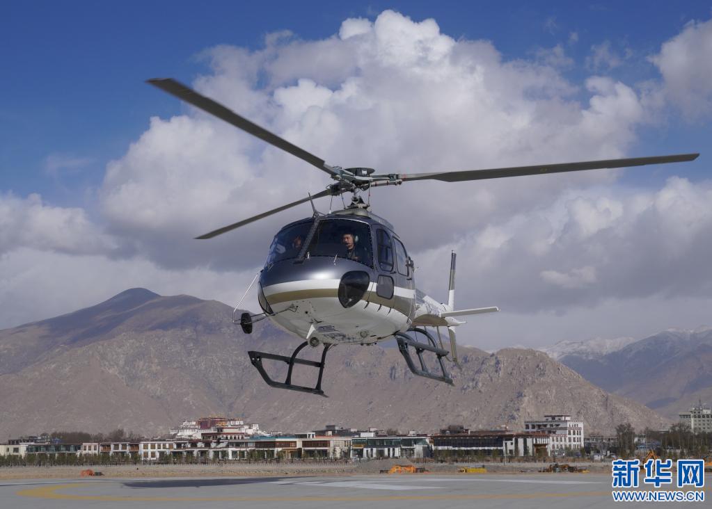 2019年3月20日,游客乘坐直升機空中游覽拉薩城。新華社記者晉美多吉 攝