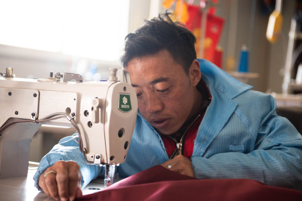 平措占堆剛出生便被診斷患有小兒麻痹癥,對于平凡的家庭來說,這無疑是一個打擊?!暗悄赣H是一個堅(jiān)強(qiáng)的人,將我和弟弟撫養(yǎng)成人,在我23歲那年,母親把我?guī)У搅诉@里,學(xué)習(xí)縫紉技術(shù)?!?/p>