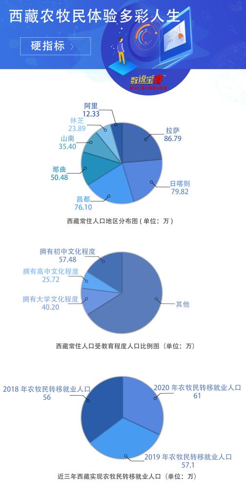 數(shù)據(jù)顯示,西藏和平解放70年來(lái),常住人口從100多萬(wàn)人增加到364.81萬(wàn)人。2019年底,西藏74個(gè)貧困縣全部摘帽,62.8萬(wàn)建檔立卡貧困人口全部脫貧。2020年,西藏地區(qū)生產(chǎn)總值突破1900億元,同比增長(zhǎng)7.8%。