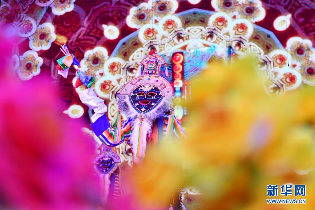 6月12日,在西藏拉薩市的自治區(qū)群藝館,演員表演藏戲《吉祥歡歌》。新華社記者 孫瑞博 攝