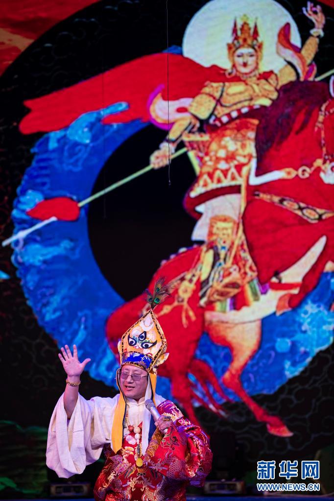 6月12日,在西藏拉薩市的自治區(qū)群藝館,格薩爾西藏自治區(qū)級(jí)代表性非遺傳承人扎西多吉表演說(shuō)唱《卓姆妙音》。新華社記者 孫瑞博 攝