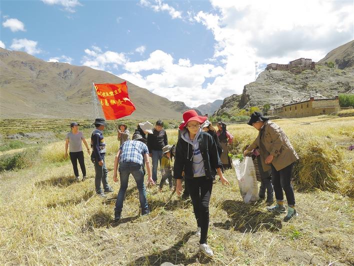 圖為西藏自治區(qū)日喀則市達(dá)那鄉(xiāng)開展黨員助農(nóng)秋收志愿服務(wù)活動。