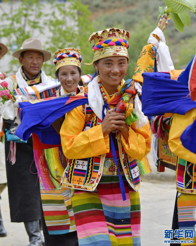 當(dāng)日,易地扶貧搬遷新村——西藏山南市加查縣冷達鄉(xiāng)共康村的村民們身著盛裝歡度“望果節(jié)”?!巴?jié)”是西藏農(nóng)區(qū)在青稞麥田成熟之際祈求豐收的節(jié)日,據(jù)傳有1500多年的歷史,因各地青稞成熟時間不一,“望果節(jié)”時間也各異。
