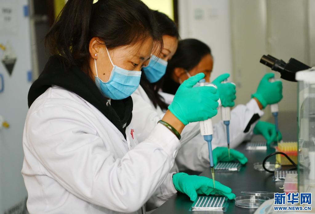 西藏職業(yè)技術(shù)學院2020屆首屆區(qū)外就業(yè)畢業(yè)生在做實驗(2020年4月9日攝)。 新華社記者 張汝鋒 攝