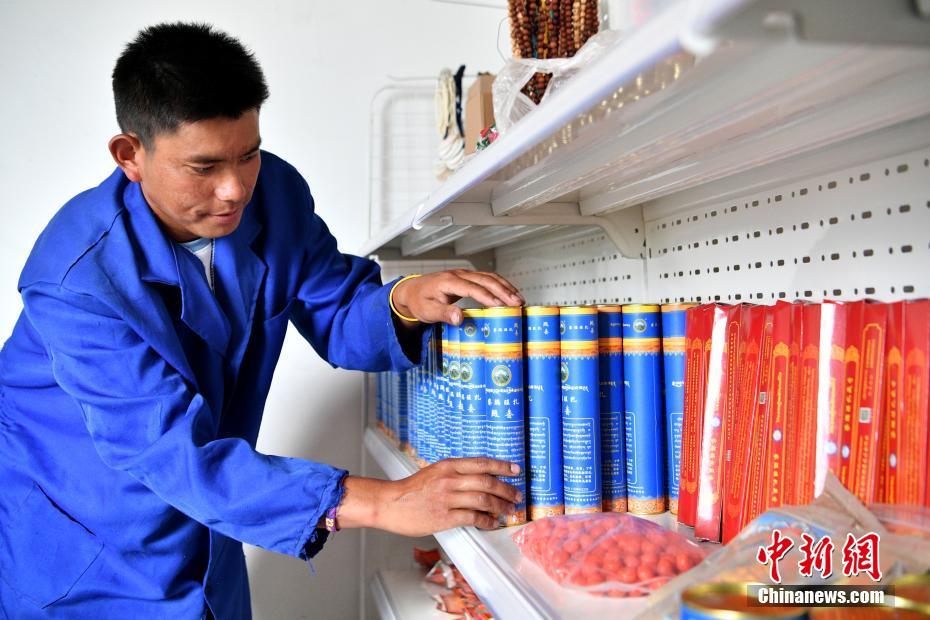 7月22日,西藏自治區(qū)林芝市察隅縣塔林村“察隅旺扎藏香”生產(chǎn)合作社的工人整理藏香貨架。2014年,“察隅旺扎藏香”生產(chǎn)合作社成立,生產(chǎn)主要由白檀香和紫檀香、沉香、丁香等30多種純天然珍貴藥材及香料制成的藏香,目前年收益可達(dá)十余萬元人民幣。合作社不僅帶動了當(dāng)?shù)厝藛T就業(yè),也推動藏香經(jīng)濟(jì)進(jìn)一步發(fā)展,促進(jìn)農(nóng)牧民增收。 中新社記者 李嘉嫻 攝