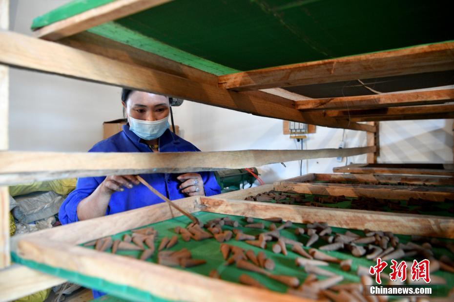 7月22日,西藏自治區(qū)林芝市察隅縣塔林村“察隅旺扎藏香”生產(chǎn)合作社的工人檢查風(fēng)干的藏香。2014年,“察隅旺扎藏香”生產(chǎn)合作社成立,生產(chǎn)主要由白檀香和紫檀香、沉香、丁香等30多種純天然珍貴藥材及香料制成的藏香,目前年收益可達(dá)十余萬元人民幣。合作社不僅帶動了當(dāng)?shù)厝藛T就業(yè),也推動藏香經(jīng)濟(jì)進(jìn)一步發(fā)展,促進(jìn)農(nóng)牧民增收。 中新社記者 李嘉嫻 攝