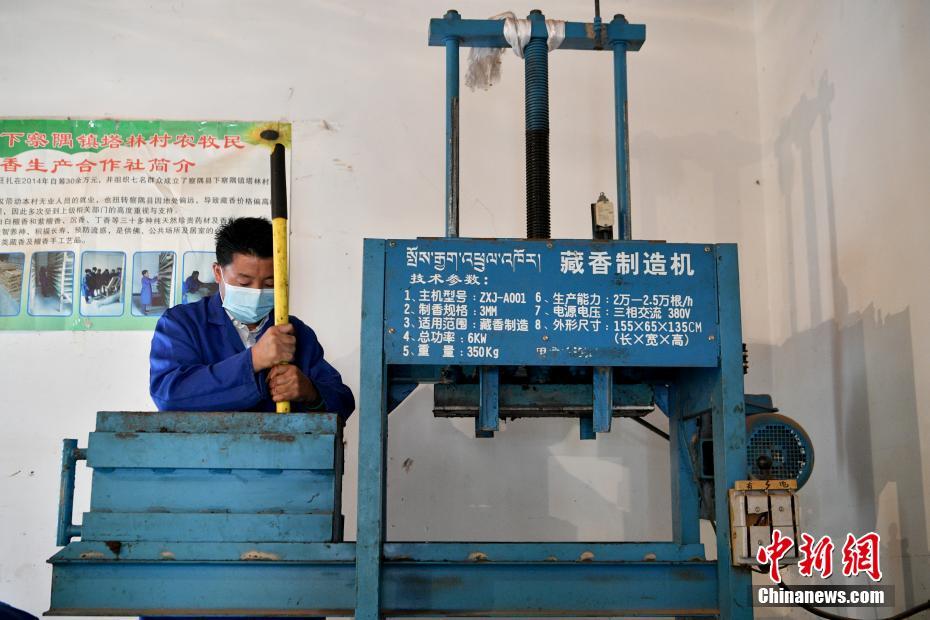 7月22日,西藏自治區(qū)林芝市察隅縣塔林村“察隅旺扎藏香”生產(chǎn)合作社的工人將藏香原料放入制作機(jī)。2014年,“察隅旺扎藏香”生產(chǎn)合作社成立,生產(chǎn)主要由白檀香和紫檀香、沉香、丁香等30多種純天然珍貴藥材及香料制成的藏香,目前年收益可達(dá)十余萬元人民幣。合作社不僅帶動了當(dāng)?shù)厝藛T就業(yè),也推動藏香經(jīng)濟(jì)進(jìn)一步發(fā)展,促進(jìn)農(nóng)牧民增收。 中新社記者 李嘉嫻 攝