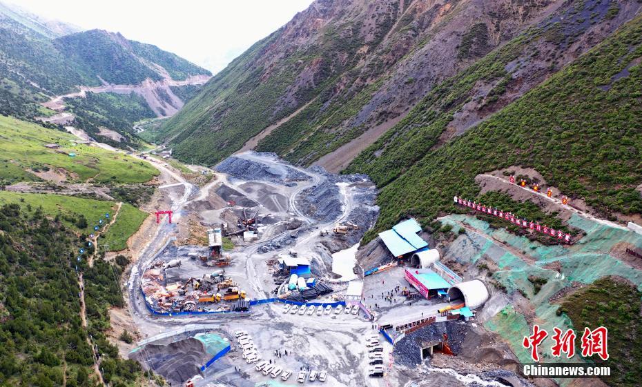 7月24日,航拍正在建設(shè)中的夏貢拉山隧道進口。穿越昌都市洛隆、邊壩兩縣和那曲市嘉黎縣的349國道控制性工程——夏貢拉山隧道項目建設(shè)正穩(wěn)步推進。(無人機照片) 中新社記者 劉忠俊 攝