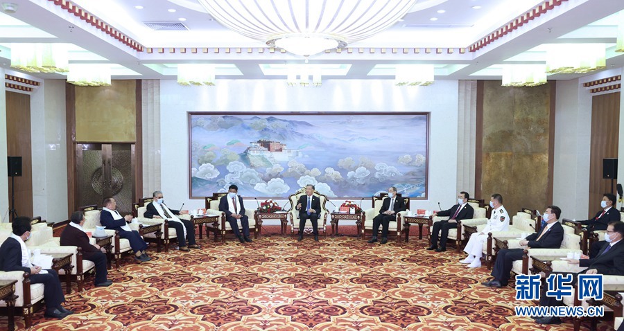 8月18日,以中共中央政治局常委、全國政協(xié)主席汪洋為團長的中央代表團飛抵拉薩,出席西藏和平解放70周年慶?;顒印J茳h中央和習近平總書記委托,汪洋在拉薩飯店看望在藏領(lǐng)導干部、老同志白瑪赤林、帕巴拉·格列朗杰和列確、巴桑,以及阿沛·阿旺晉美同志家人代表,向他們表示親切問候。新華社記者 劉彬 攝