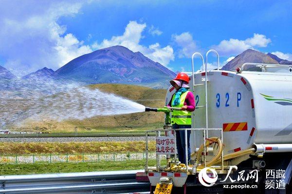 基礎(chǔ)打好了,接下來是種草(花),種的都是更適應(yīng)高原環(huán)境的鄉(xiāng)土草(花)種。“在高原上種花種草太難了,比照顧孩子還要悉心。剛開始要施肥,讓它們盡快長出根吸收營養(yǎng),現(xiàn)在每天上午、下午都要澆水?!焙笃诠茏o工人周玉娟說。