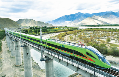 復(fù)興號(hào)列車行駛在西藏山南市境內(nèi)。新華社記者 覺 果攝