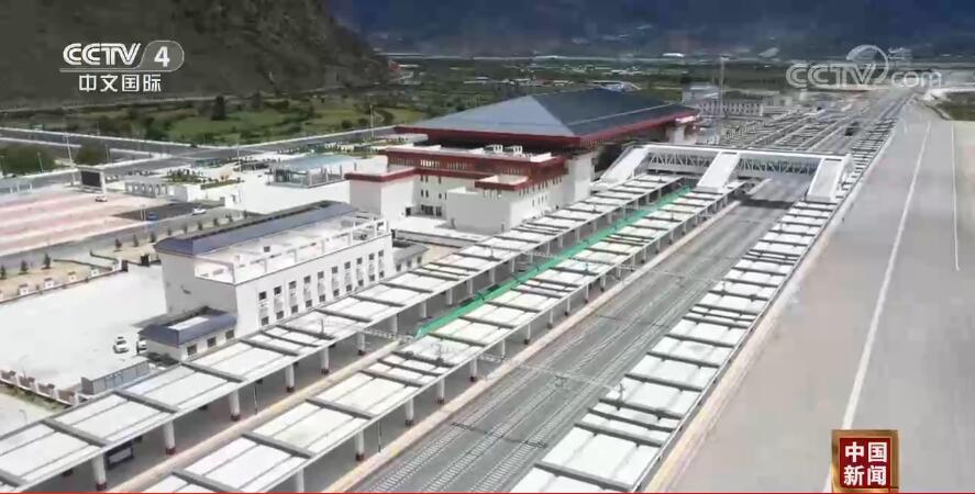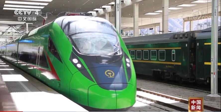 總臺央視記者 宋達(dá):我現(xiàn)在乘車來到拉林鐵路的林芝站。今年6月25日,拉林鐵路正式開通運營,這標(biāo)志著川藏鐵路的建設(shè)取得了重大進(jìn)展,也意味著復(fù)興號首次駛上了青藏高原,結(jié)束了藏東南地區(qū)不通鐵路的歷史。我們可以看到拉林鐵路的復(fù)興號列車被設(shè)計成了綠色的外觀,有人形象地把它說成“綠巨人”。