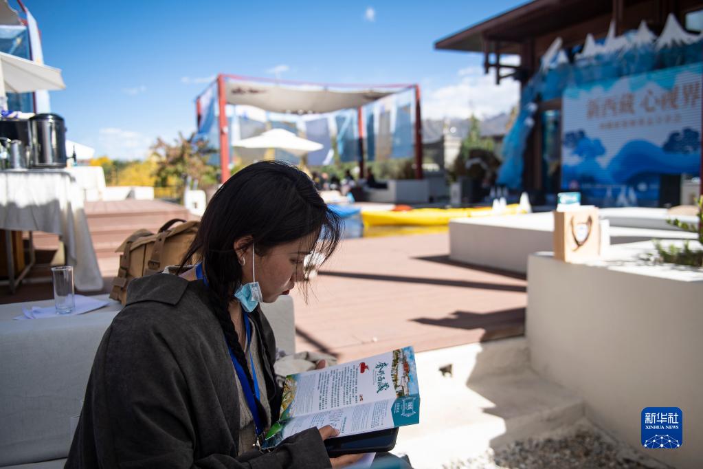 9月30日,一名媒體記者在西藏旅游新業(yè)態(tài)分享會上翻看西藏旅游線路的相關介紹。新華社記者 孫瑞博 攝