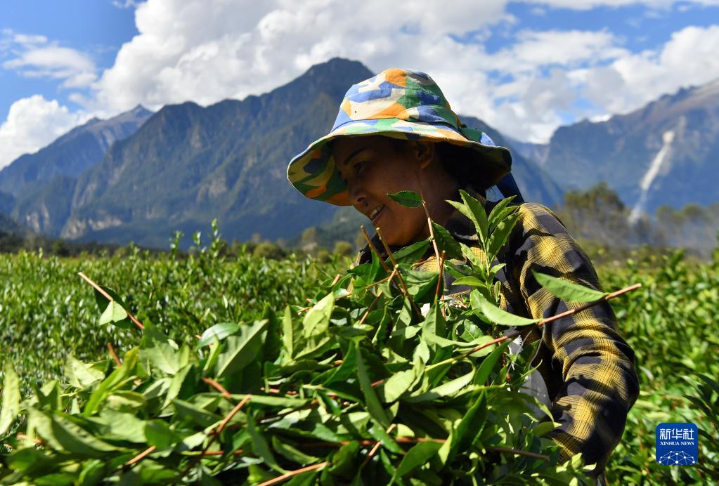 10月18日,易貢茶場(chǎng)職工在采茶。新華社記者 晉美多吉 攝